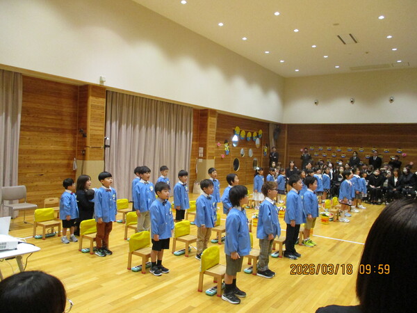 | 令和7年度の卒園式があり、27名のお友だちが元気に巣立ちました。 たくさんの思い出をありがとうございました。 小学校でも「いつも明るい元気な子」を忘れないで楽しい学校生活を過ごして下さい。 |