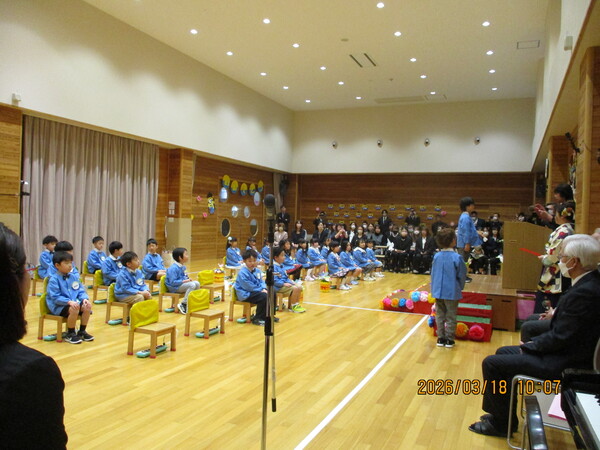 | 今日(11日)の羽幌は小春日和で散歩の気持ち良い天候でした。 そんな中、年中組の「お別れ会」がありました。 鍵盤ハーモニカやオペレッタ、ストレッチや親子でゲームなど 様々なことに挑戦しました。4月からは年長組になります。 また、楽しい思い出たくさんつくろうね。 |